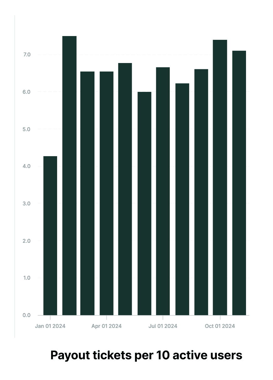 Added customer support efficiency metric → every payout ticket = ~15 mins agent time × thousands of tickets = significant cost.